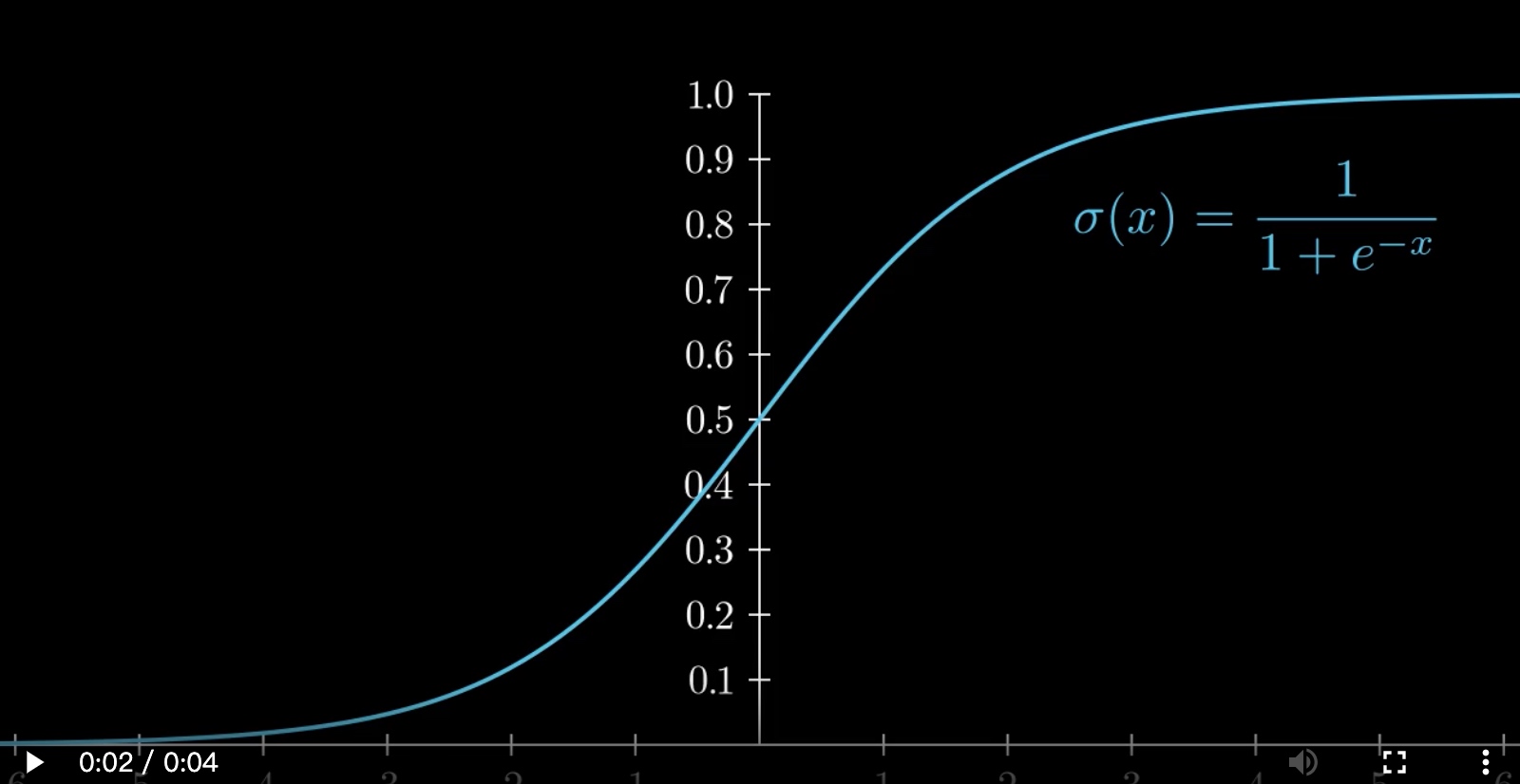 sigmoid_graph, label="\\sigma(x) = \\frac{1}{1 + e^{-x}}", x_val=4, direction=DOWN,buff=0.5