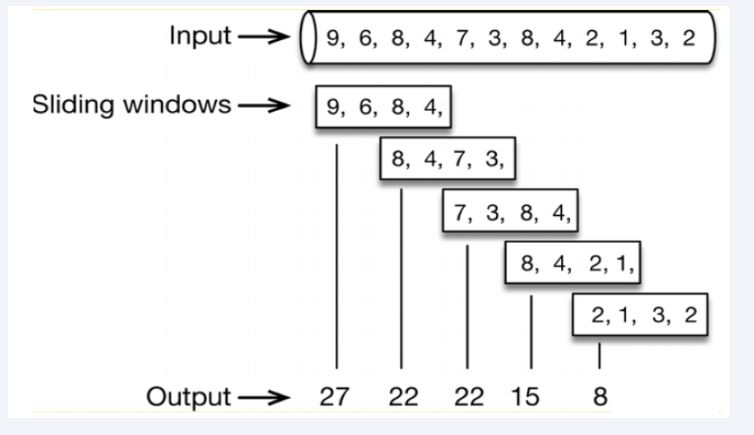 滑动窗口算法是把固定时间片进行划分并且随着时间移动,移动方式为开始时间点变为时间列表中的第2个时间点,结束时间点增加一个时间点,