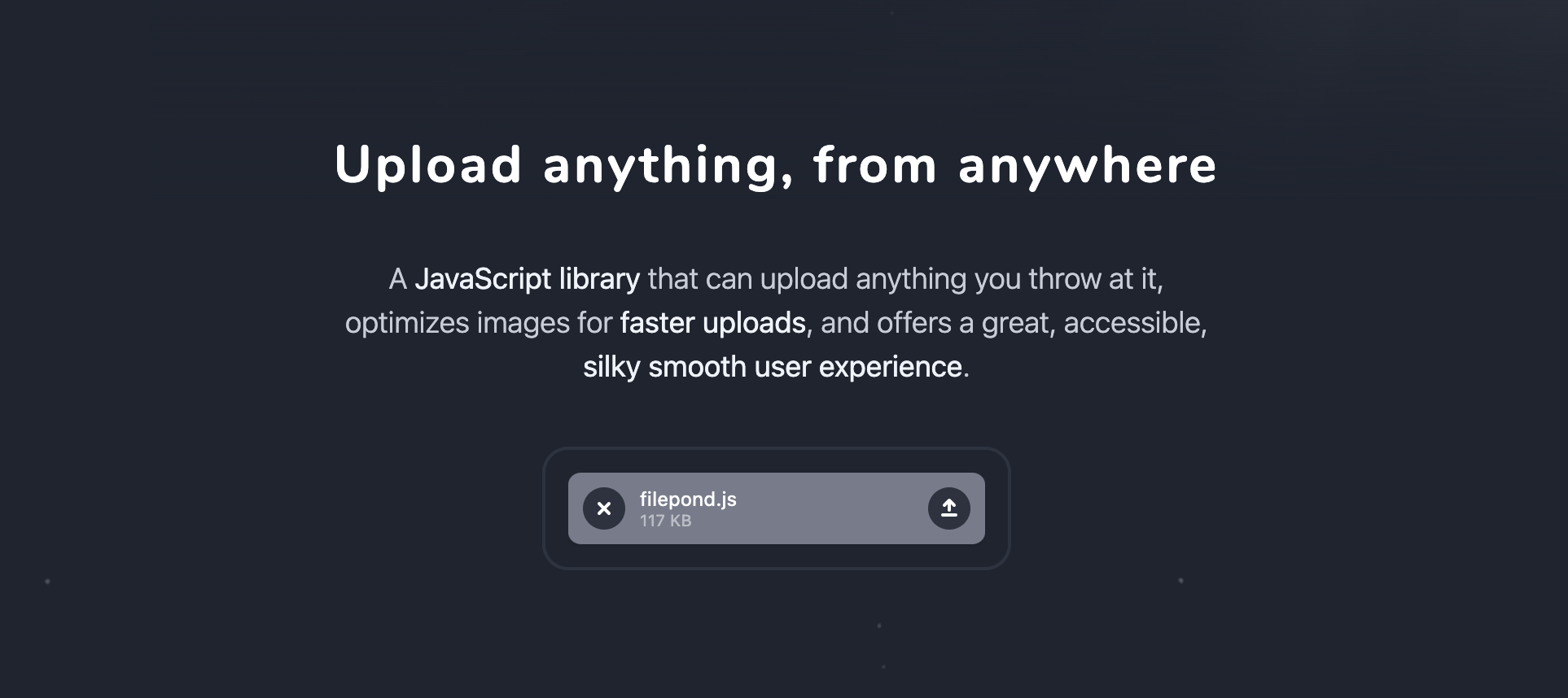 FilePond 是一个高度模块化的 JavaScript 文件上传库,能够在不同框架中提供一致的体验。它的核心设计理念是为文件上传提供出色的用户体验,并且让开发者能够轻松扩展或定制上传流程。FilePond 支持拖拽上传、实时预览、文件压缩、图片裁剪等高级功能,并且能够处理多种文件类型。