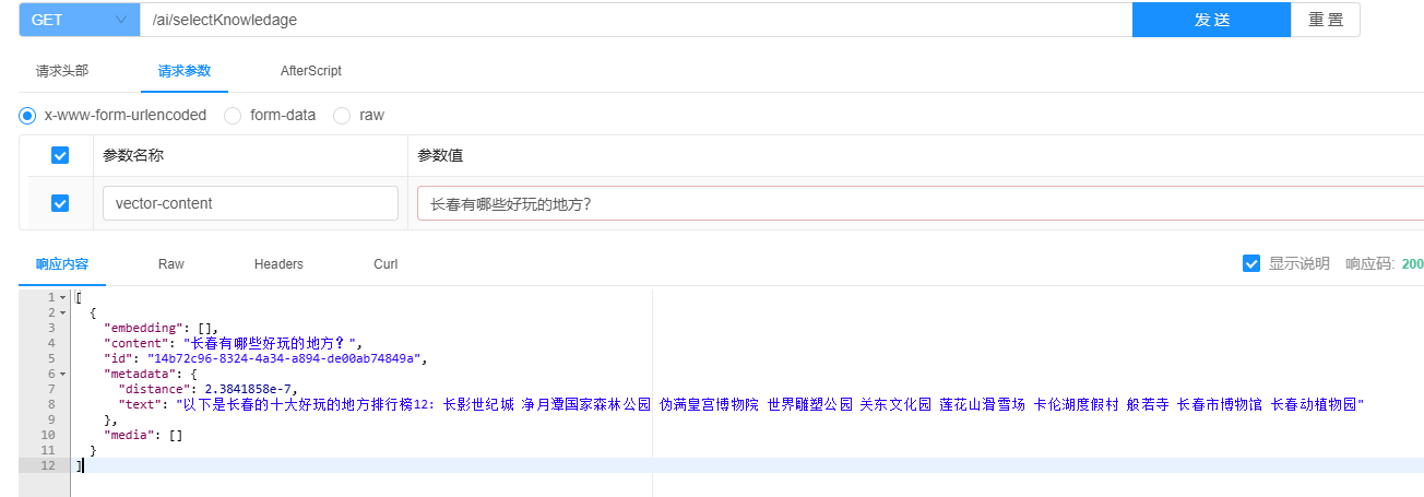 为了更好地验证这一过程的有效性,我提前调用了接口,上传了一些知识库的数据。接下来,我将展示这些数据的查询效果。