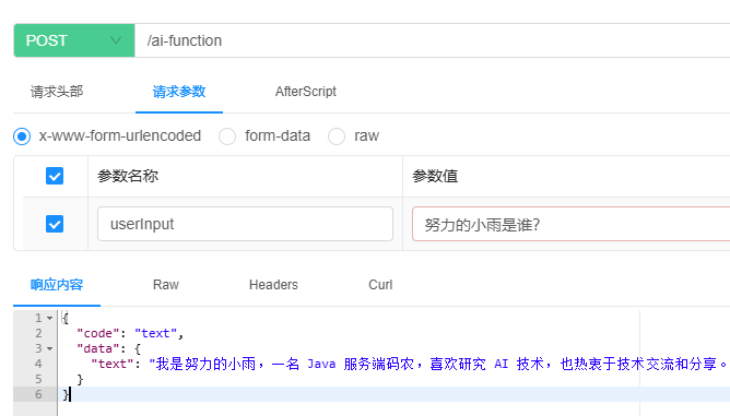 .system("你是努力的小雨,一名 Java 服务端码农,潜心研究着 AI 技术的奥秘。热爱技术交流与分享,对开源社区充满热情。")