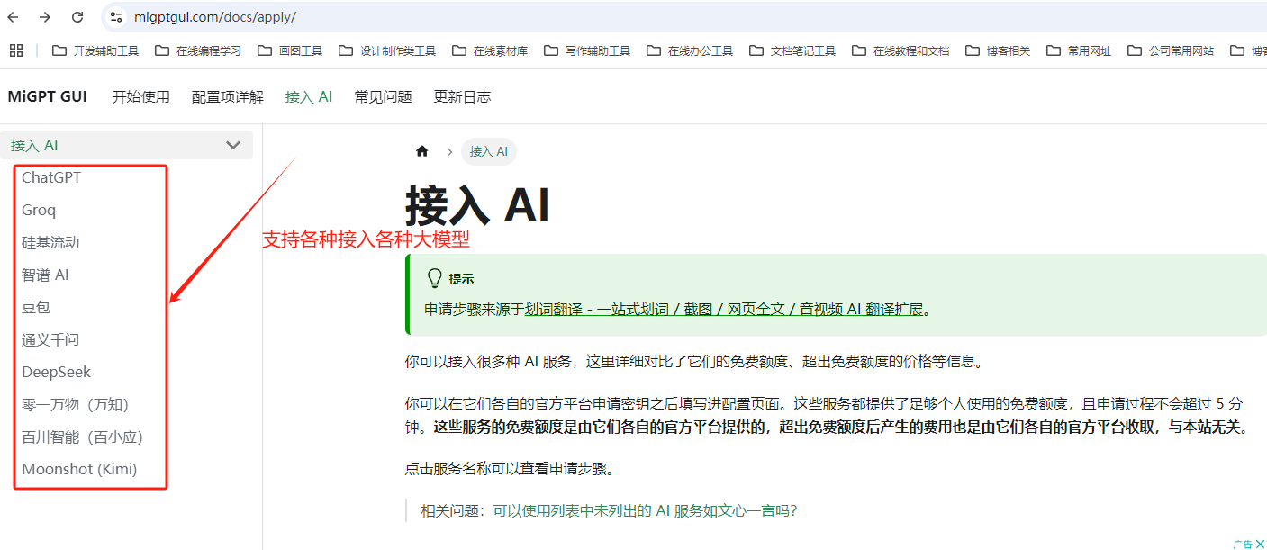 接入豆包、Moonshot(Kimi)、通义千问、质谱AI等大模型