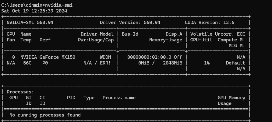 显卡驱动版本可高于cuda版本,会向下兼容,但是不可小于,执行命令,nvidia-smi可查看显卡目前的状态以及运行中的进程