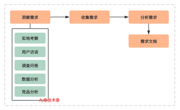 首先需要洞察用户需求,将洞察到的用户需求收集起来,然后进行分析 – 需求分析。分析真需求和伪需求,然后形成一份需求文档。