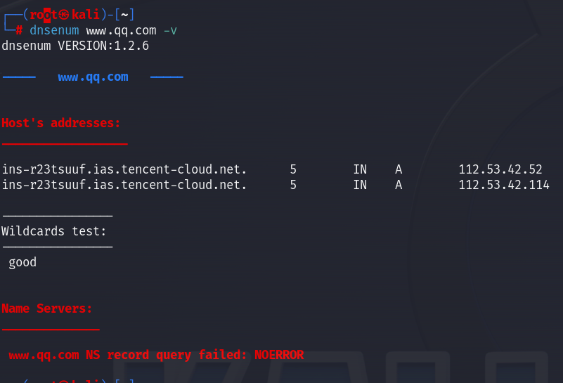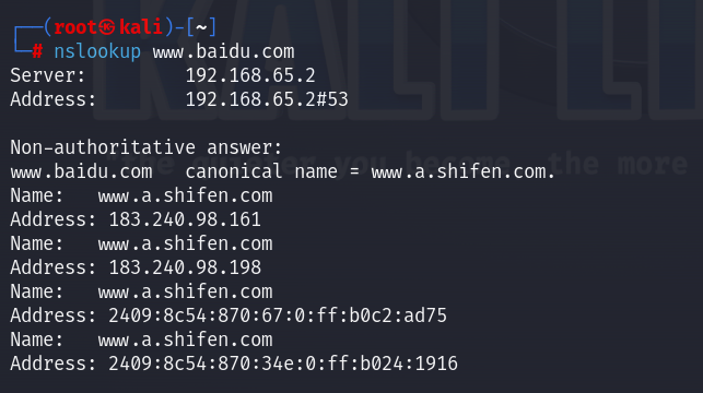 4.使用kali内嵌的whois命令,ping和nslookup命令解析域名对应IP