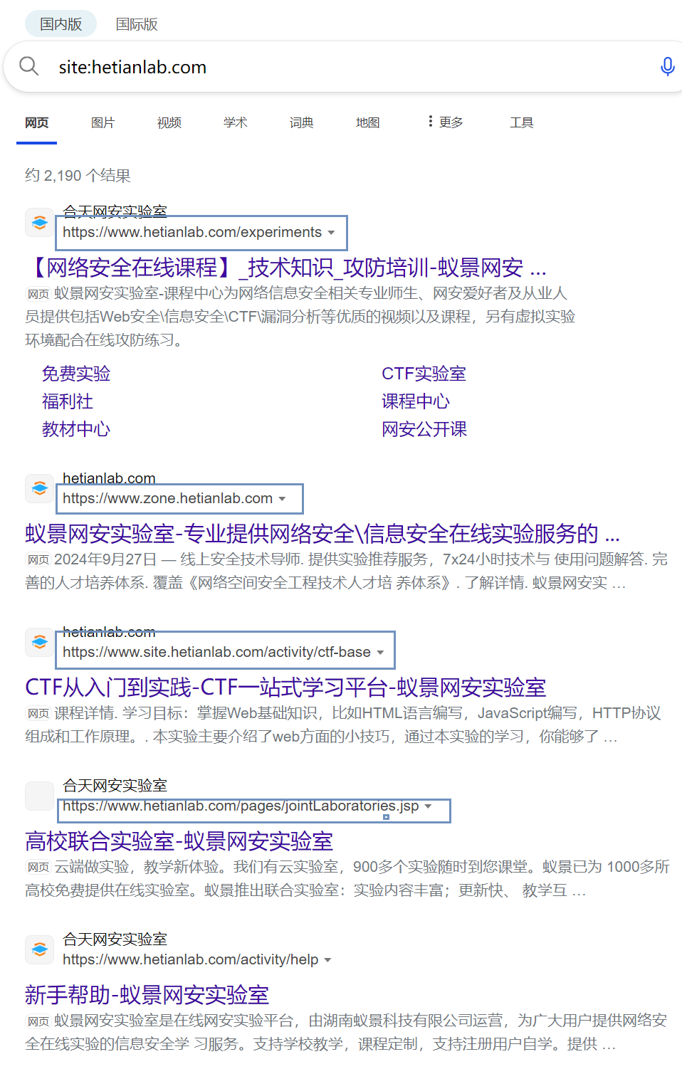 被动信息收集是指通过搜索引擎数据库等,搜索目标的关键信息,较为隐蔽。