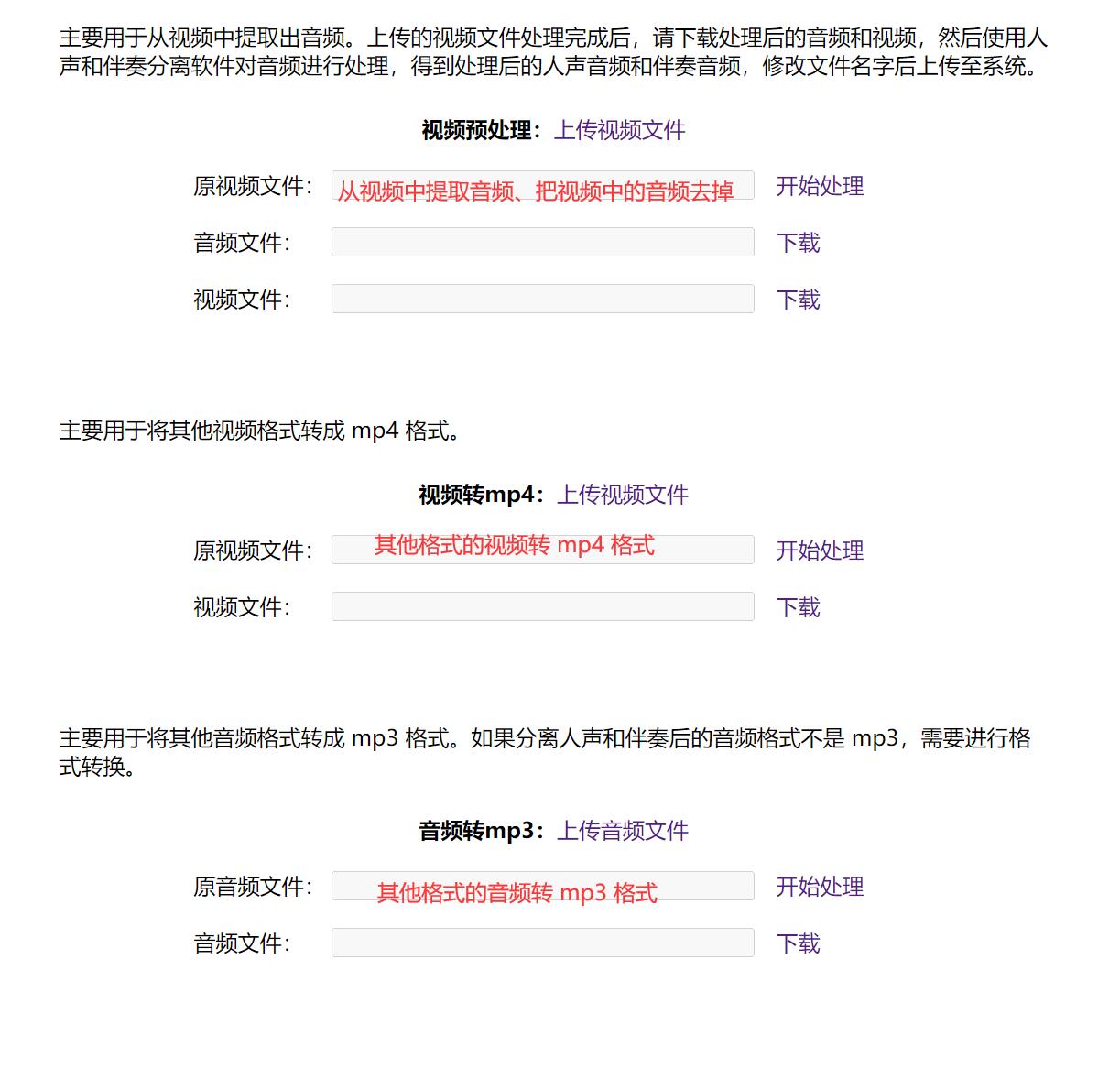 本系统支持的视频格式是 mp4,支持的音频格式是 mp3,如果不是这种格式,需要进行转换,直接使用系统提供的格式转换能力,在页面上操作很方便。