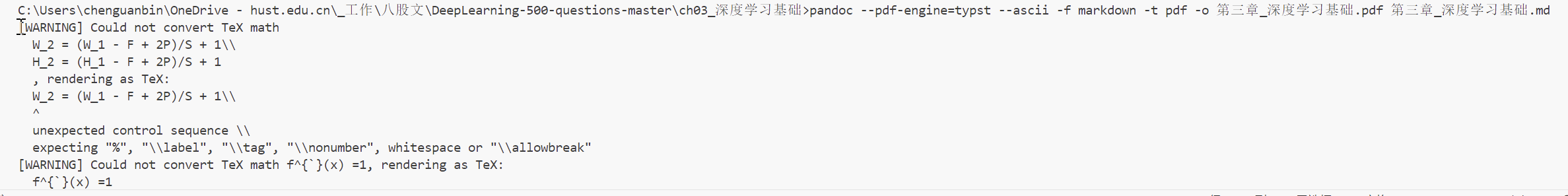 3. pandoc –pdf-engine=xelatex typst、markdown-pdf可以试试,但是不保证公式和图片对不对,或者报错什么的