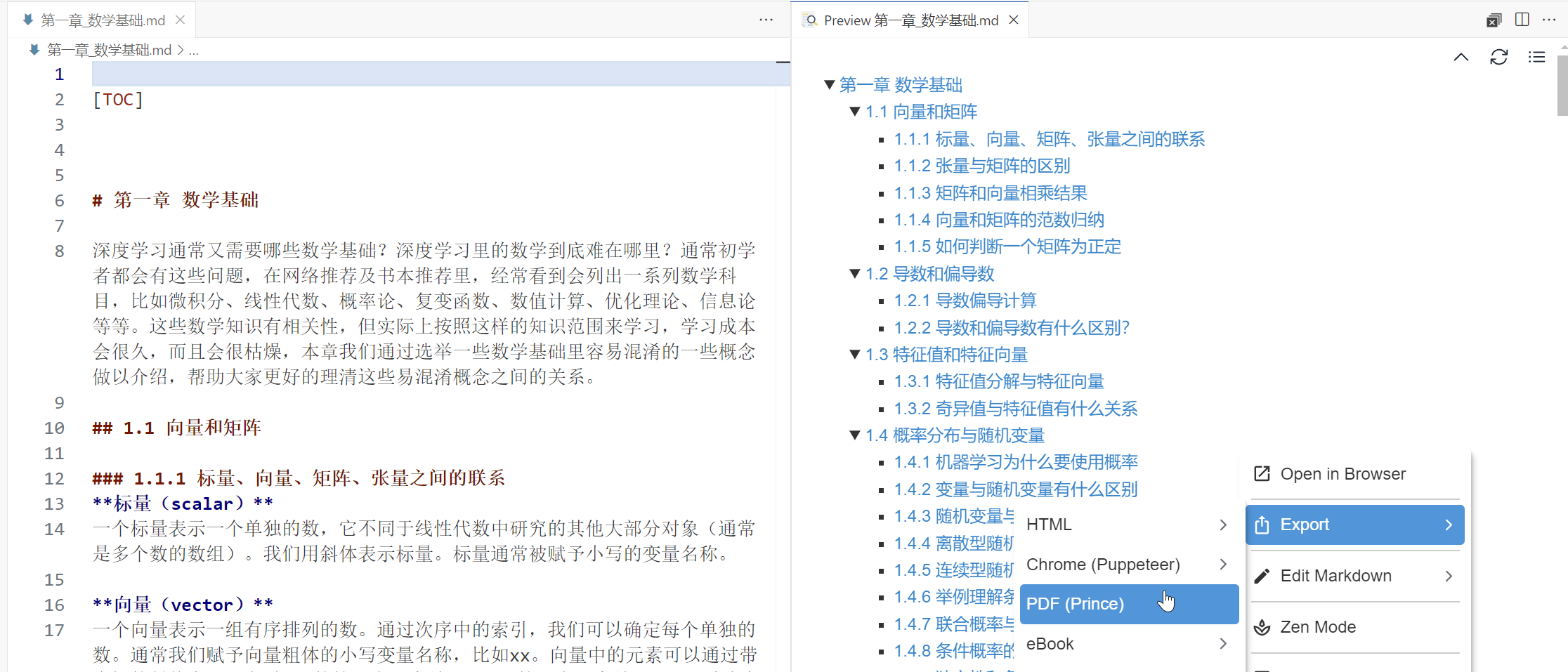 1. VScode插件Markdown All In One 统一把markdown转html + PDF阅读器统一把html转pdf