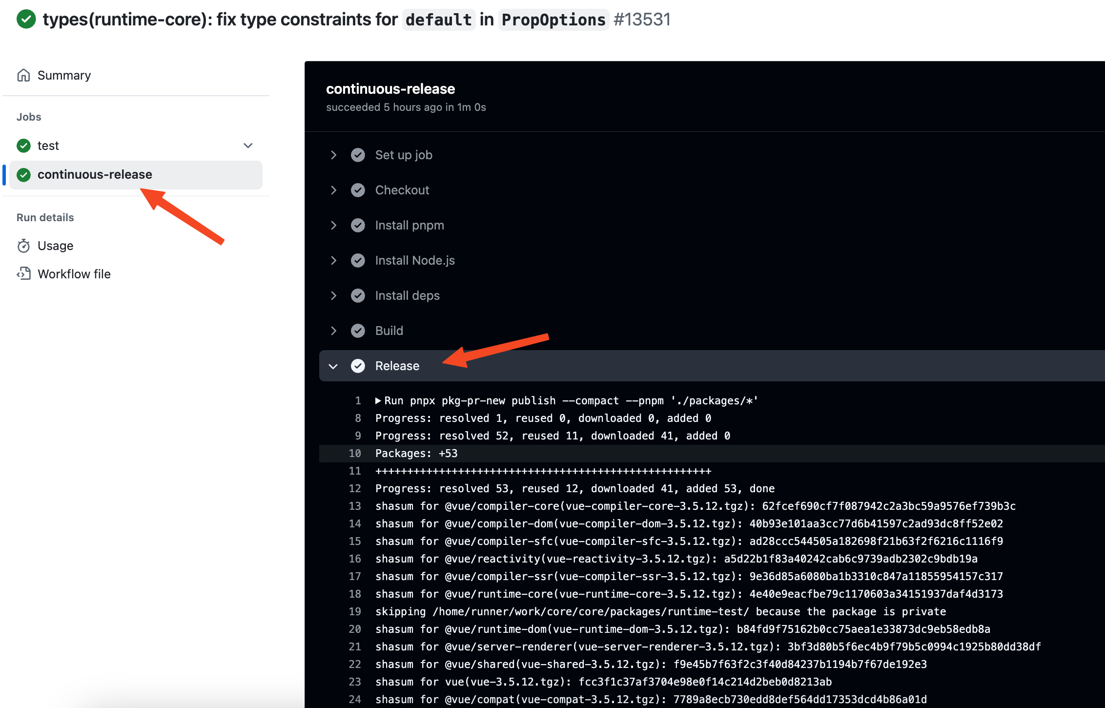 Vue 引入了 pkg.pr.new后,每个commit或者PR都会自动触发一个新的发布到pkg.pr.new网站上面。并且和npm站点上面发布的包不会冲突,我们也可以不用等待Vue发布就可以体验最新版本的Vue啦。