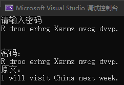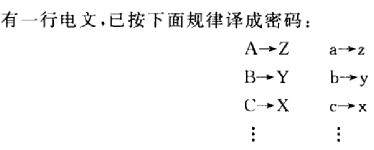 即第1个字母变成第26个字母,第i个字母变成第(26-i+1)个字母,非字母字符不变。要求编程序将密码译回原文,并输出密码和原文