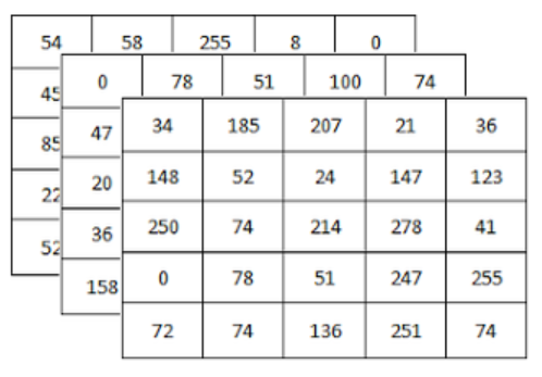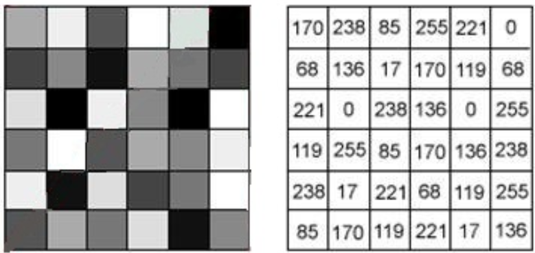 例如下面右图矩阵标注了左图像素点的灰度分布: