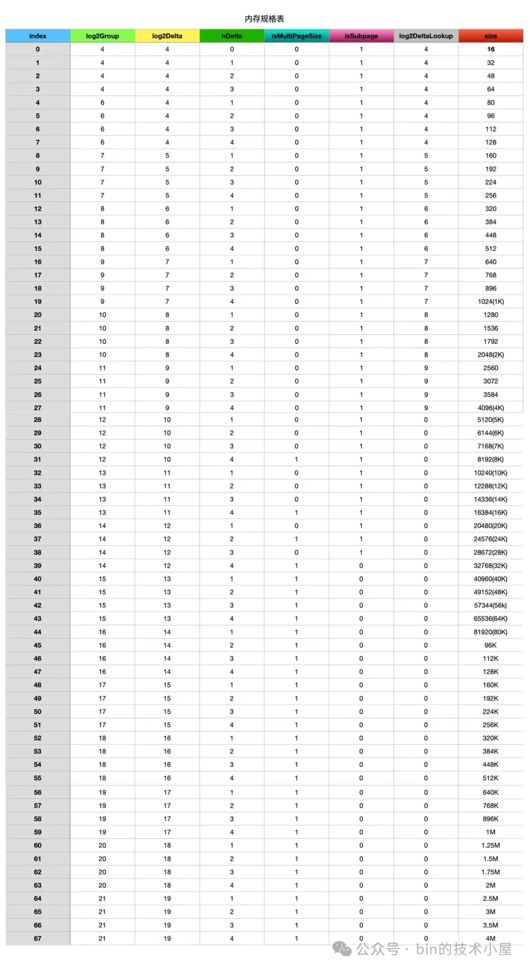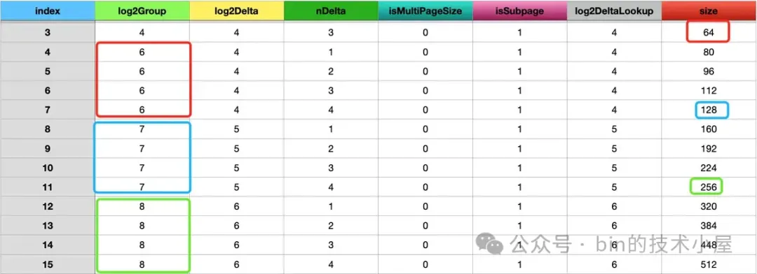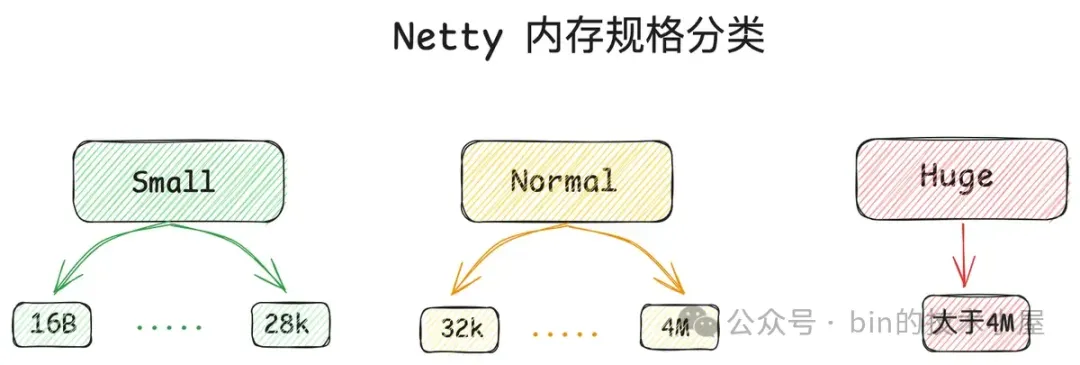 除此之外,Netty 又将这 68 种内存规格分为了三类: