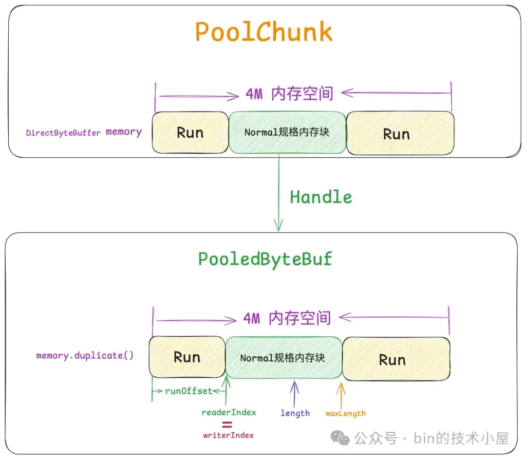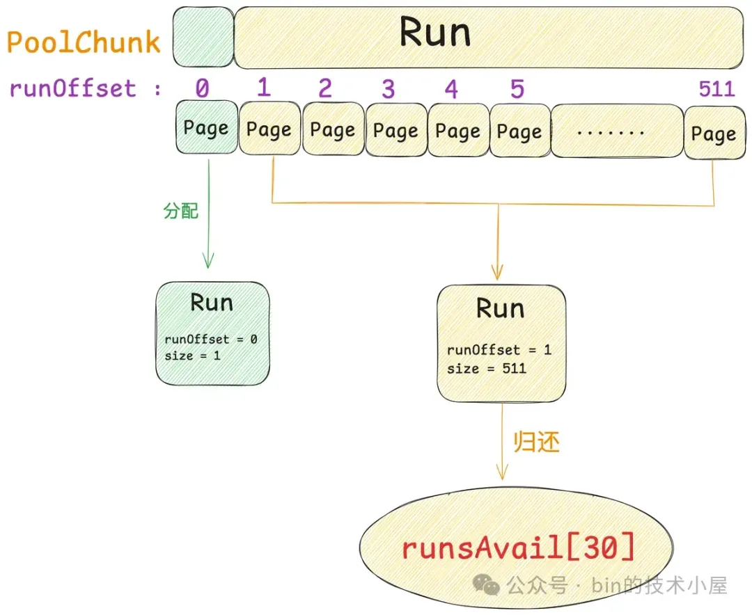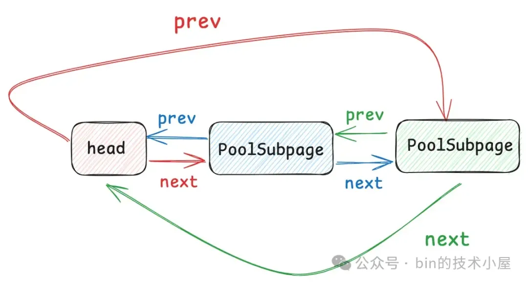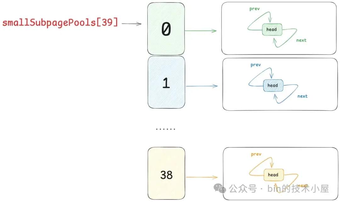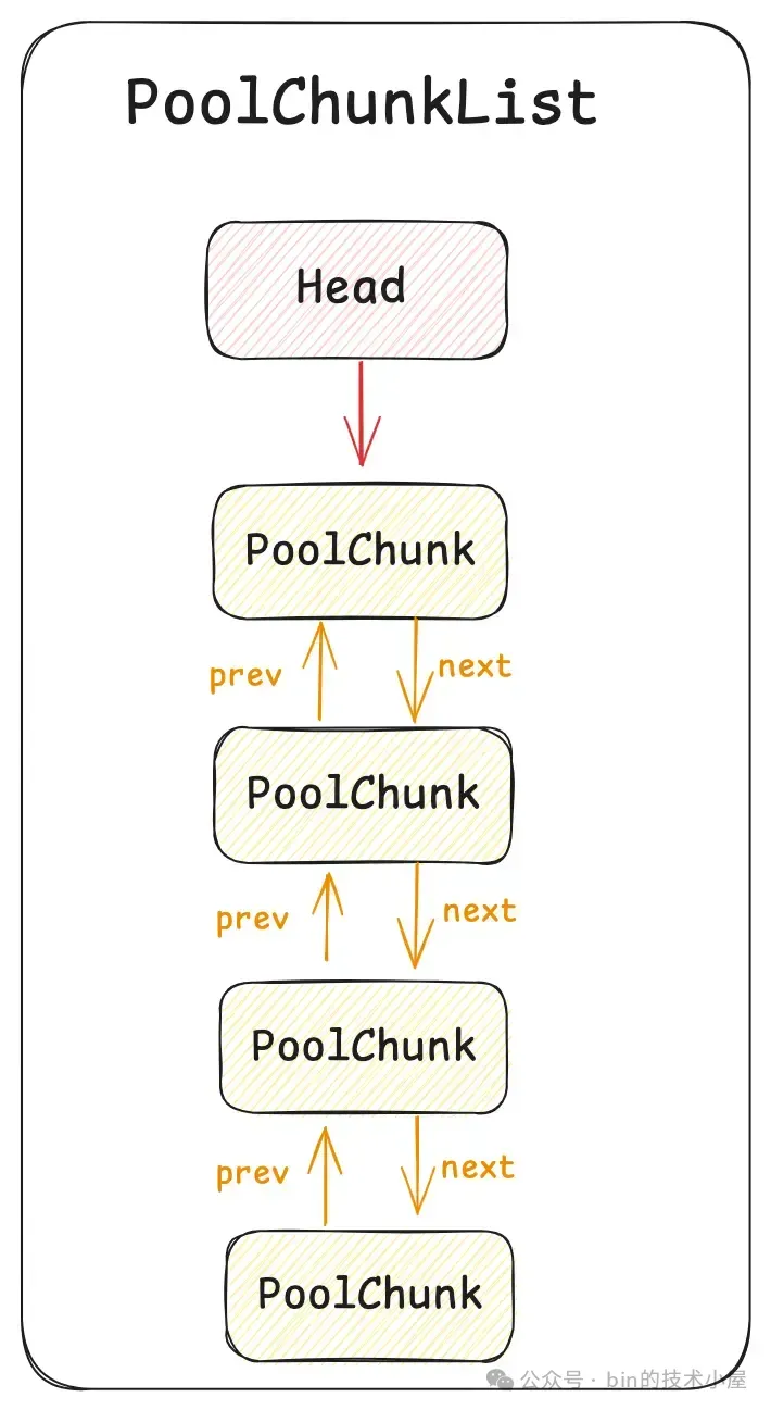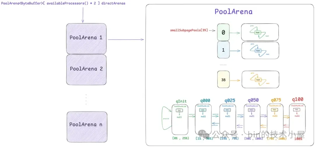 所以无论是什么类型的线程,在它运行起来之后,当第一次向内存池申请内存的时候,都会采用 Round-Robin 的方式与一个固定的 PoolArena 进行绑定,后续在线程整个生命周期中的内存申请以及释放等操作都只会与这个绑定的 PoolArena 进行交互。