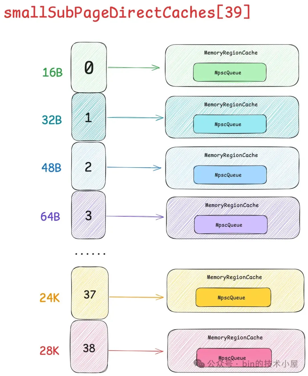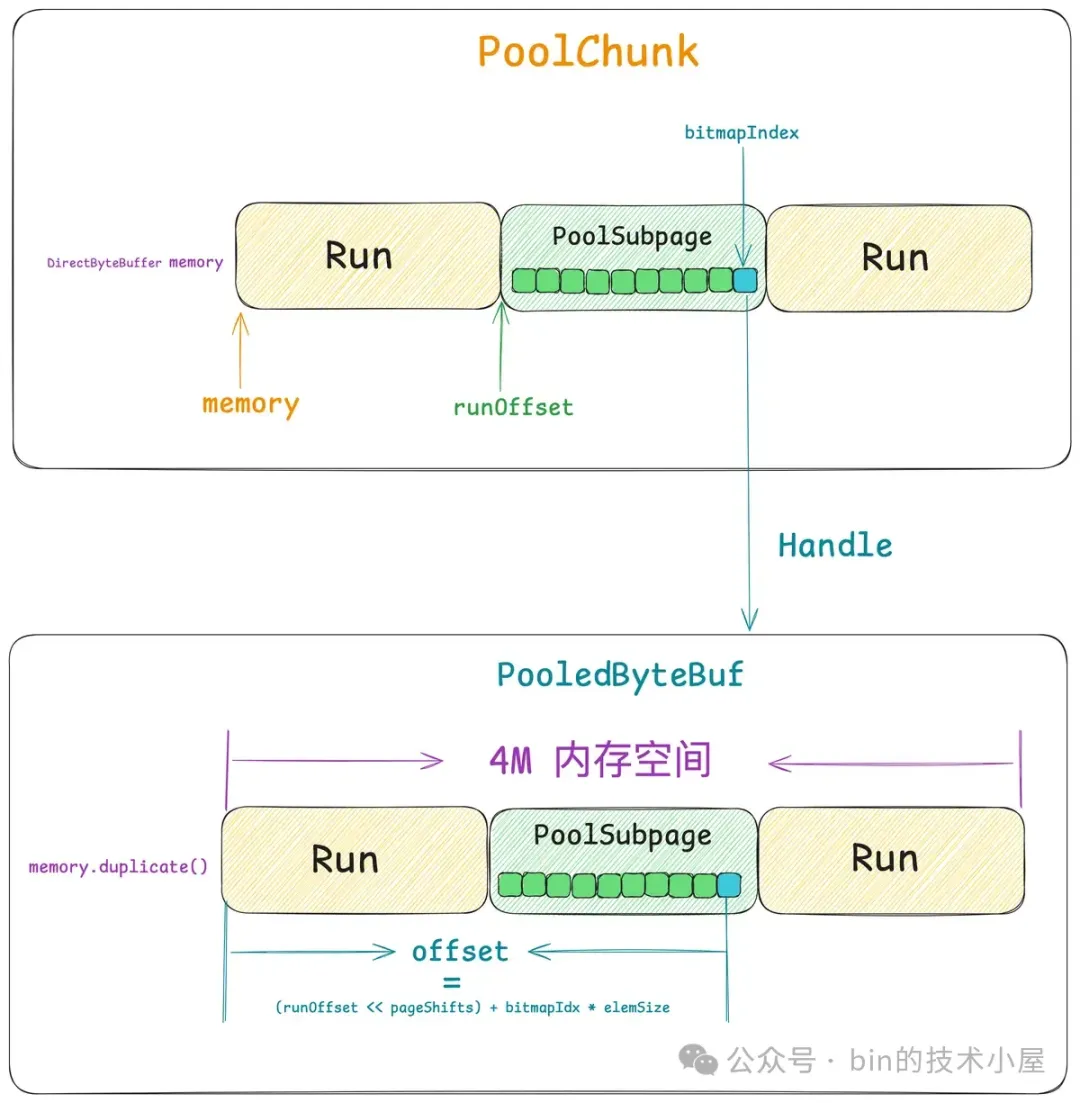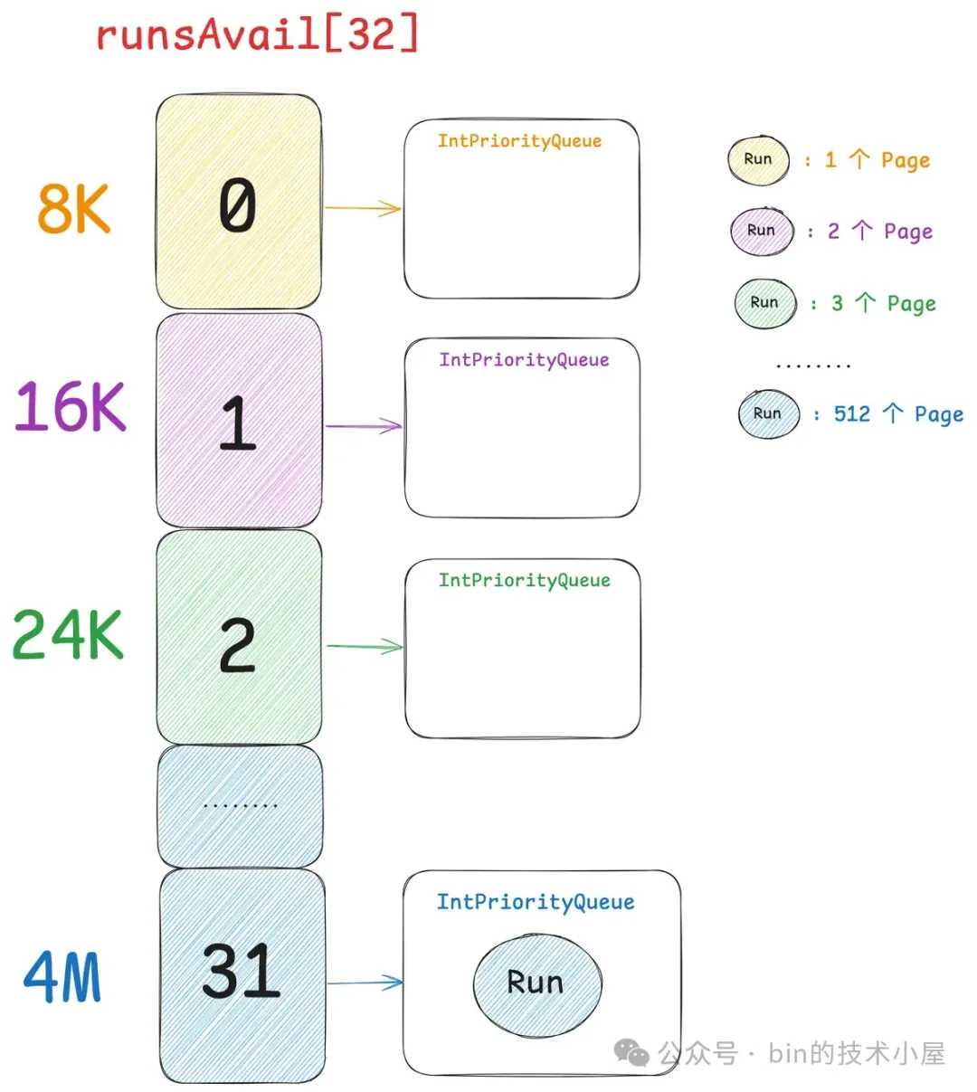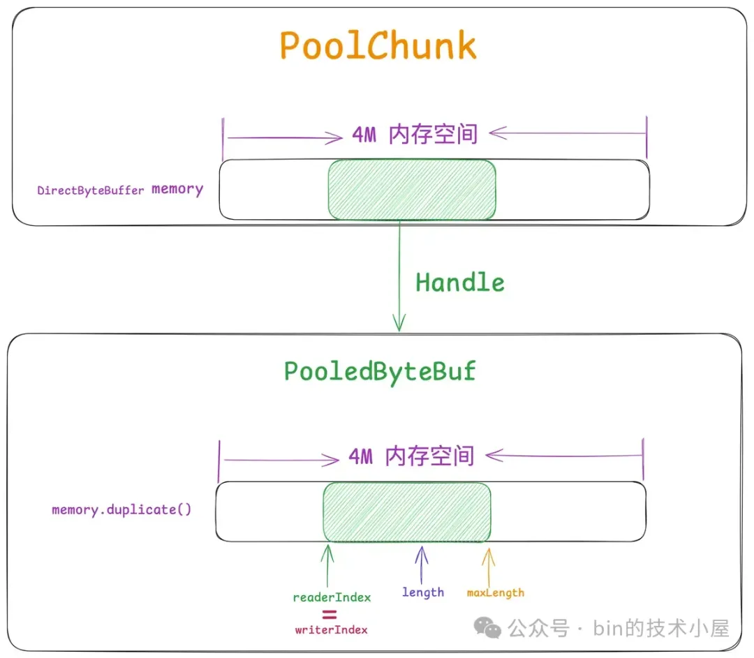 所以无论是什么类型的线程,在它运行起来之后,当第一次向内存池申请内存的时候,都会采用 Round-Robin 的方式与一个固定的 PoolArena 进行绑定,后续在线程整个生命周期中的内存申请以及释放等操作都只会与这个绑定的 PoolArena 进行交互。