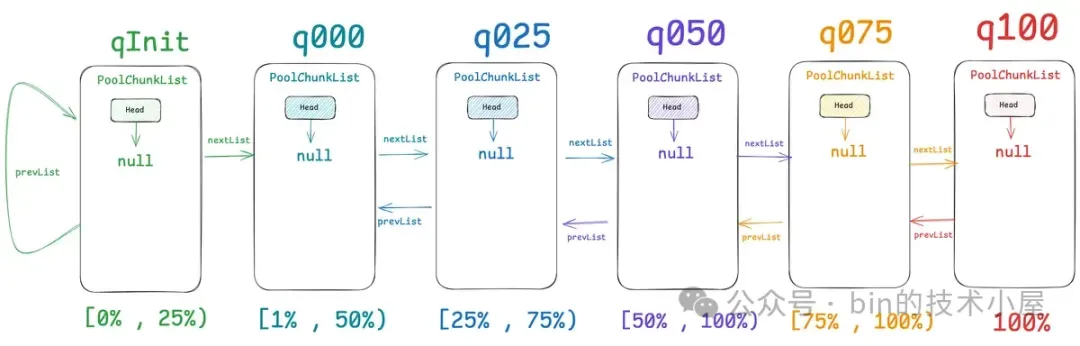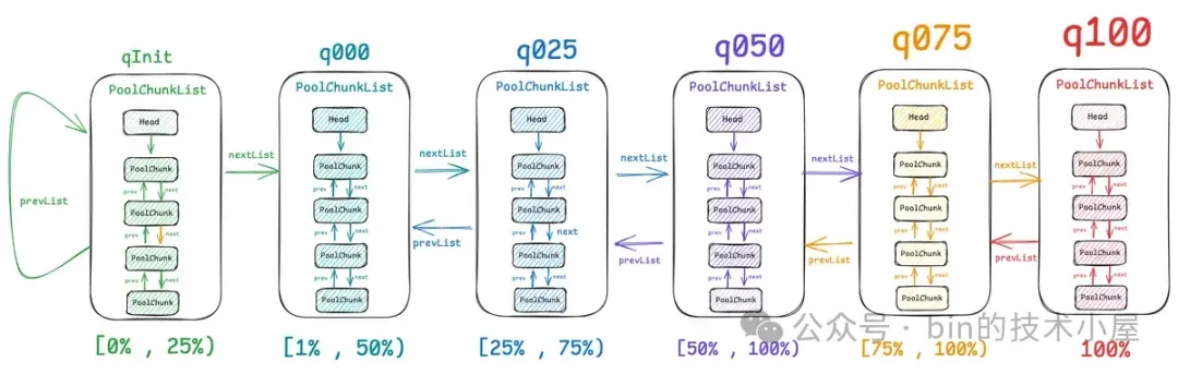 final class PoolChunkList<T> implements PoolChunkListMetric {