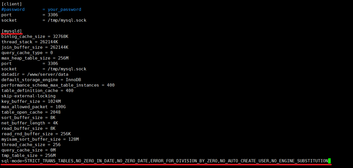 sql-mode=STRICT_TRANS_TABLES,NO_ZERO_IN_DATE,NO_ZERO_DATE,ERROR_FOR_DIVISION_BY_ZERO,NO_AUTO_CREATE_USER,NO_ENGINE_SUBSTITUTION