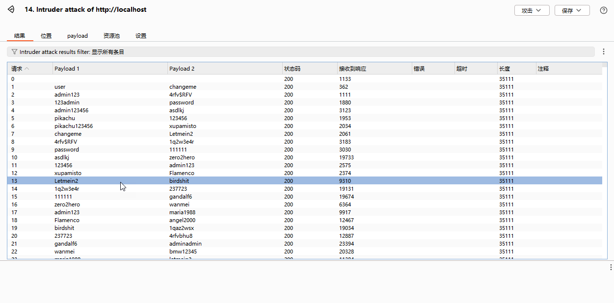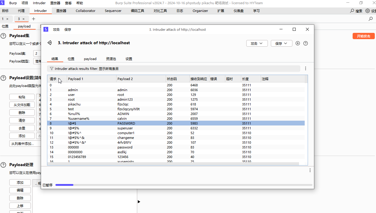 - 此时上方的 payload 就是 爆破出来的用户名和密码