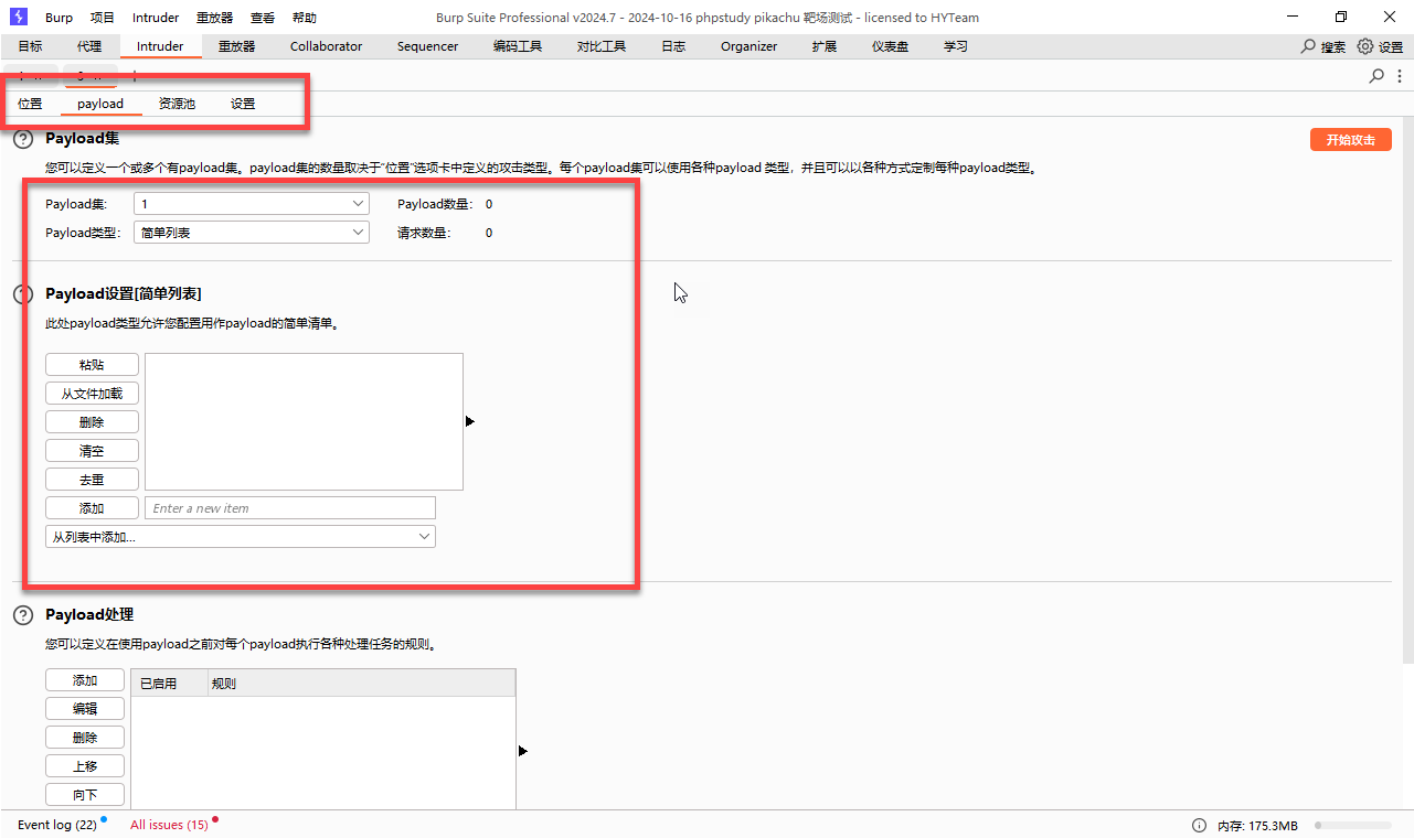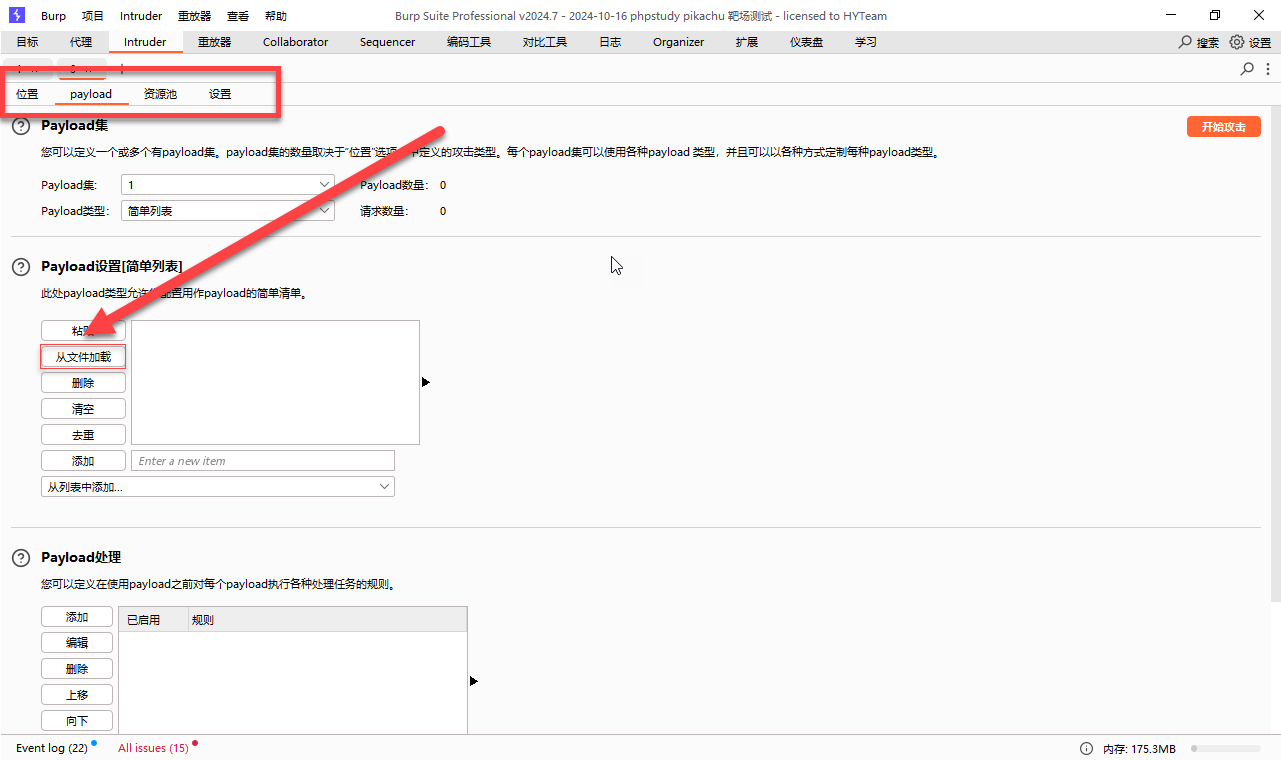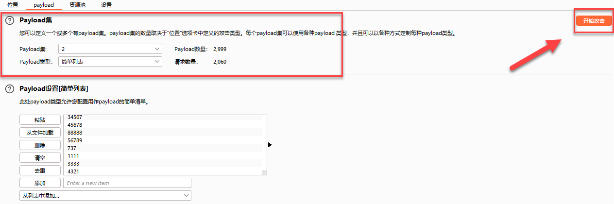 - 点击 位置旁边的 payload 选项卡 进行设置字典