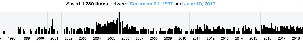 搜索 phonelosers.org,会显示从 1997 年 12 月 21 日到 2019 年 10 月 6 日期间该网站的总共 1,280 个截图(图 9.08)。点击链接后,网站的变化一览无余。图片也被存档,这证明我们在向互联网发布照片时应该三思而后行。每次浏览存档页面时,用户都可以点击链接,就像在原始网络服务器上浏览实时页面一样。点击每个页面顶部的时间轴,将加载所选日期出现的页面。