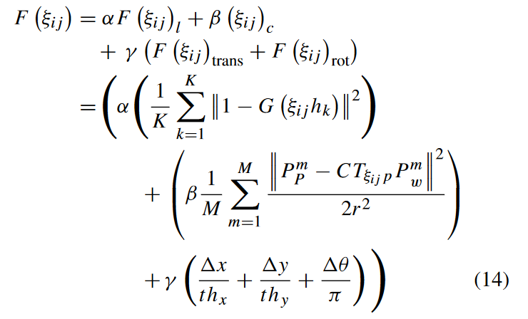 其中 xiij = (ti j , θi j ) 为扫描框在循环子图 j 坐标系中的位姿,Txiij 为扫描点 hk 到子图 j 的转换矩阵。
