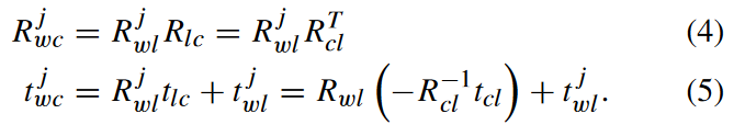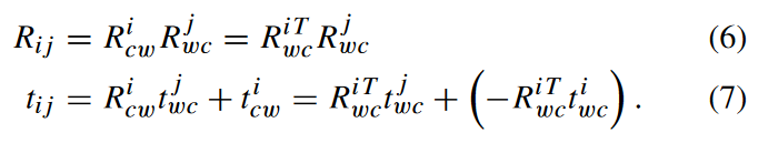 (Ri cw, ti cw ) 和 (R j cw, t j cw) 分别为 f i c 和 f j c 处的相机位姿,两帧的相对位姿求解如下:
