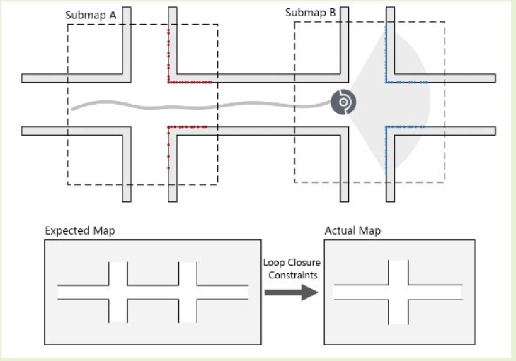然而,激光雷达只能获取环境的几何信息,这可能使得仅激光雷达的SLAM容易出现定位或建图问题,特别是在缺乏几何纹理或重复几何结构的情况下。在存在平行廊道的环境中,由于廊道的几何结构相似且在地图中距离较近,因此在构建地图时会将两条廊道视为同一条廊道,从而进行融合。在图书馆环境中,由于书架的几何结构非常相似,很容易将不同行的书架误认为是检测闭环,而优化时会将不同行的书架融合,导致严重错误在测绘中。