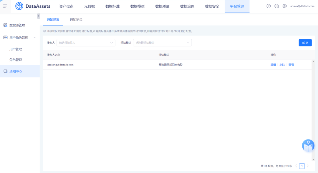 通知记录涵盖针对每个单独模块配置的通知信息、以及通知中心批量配置的通知信息。