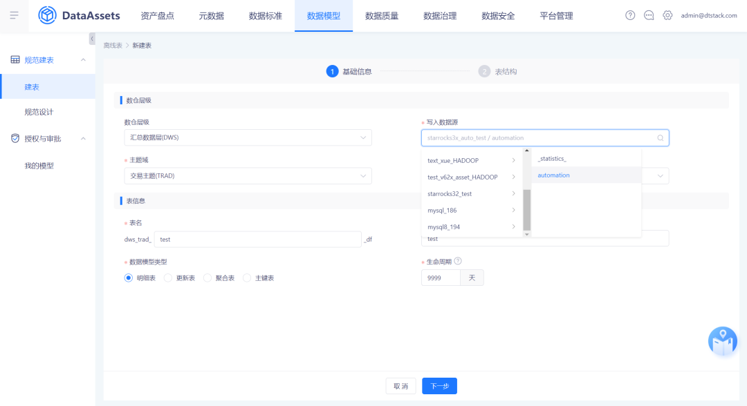 新增「数据模型」-数据建表/删表/编辑表操作对接审批中心,实现审批流程标准化,规范了数据管理流程。