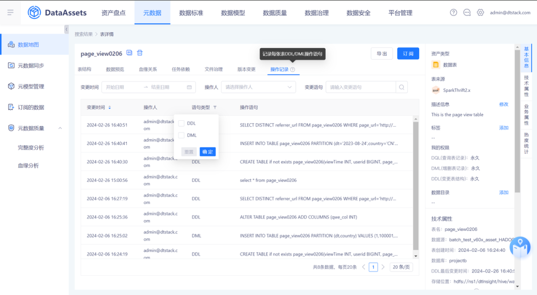 (3)针对「操作记录」板块,新增了 DML 操作记录,增强了数据使用的透明度和可追溯性。