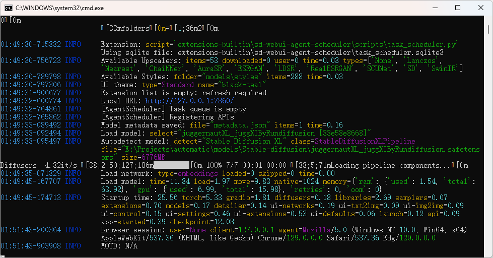 运行 webui(后来发现整合包好像可以自动处理 PyTorch 等,我这边已经装好了就没法验证)