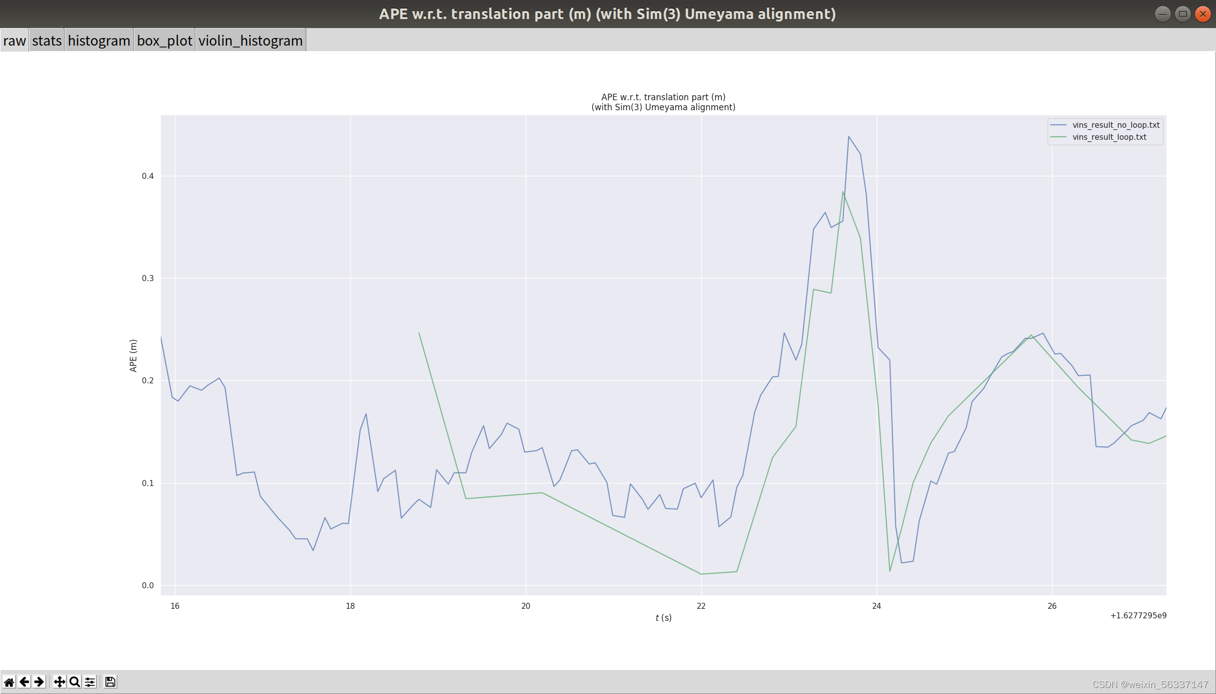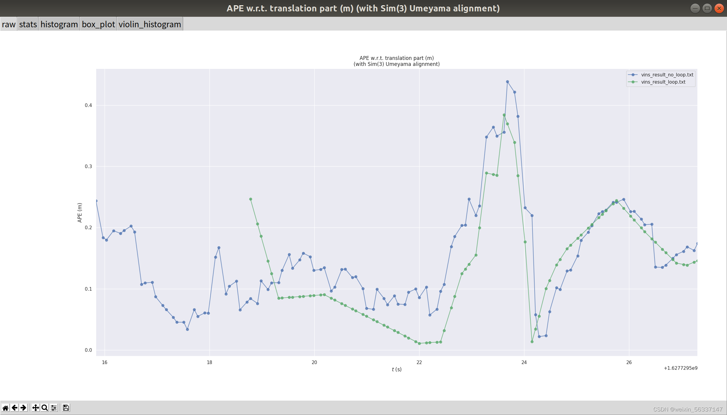 evo_ape euroc 参轨.csv 估轨.txt -r full -va --plot --plot_mode xyz --save_plot ./VINSplot --save_results ./VINS.zip #VINSplot: 表示存储在当前路径下的名称为VINSplot的文件中。 #保存文件的类型可以通过evo_config设置。 #常见的可以保存成png,pdf等,详见evo_config部分