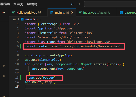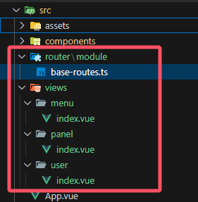 el-main中的内容替换为 <router-view></router-view> el-menu中添加 router属性 然后导入base-routes.ts 文件,并添加如下代码