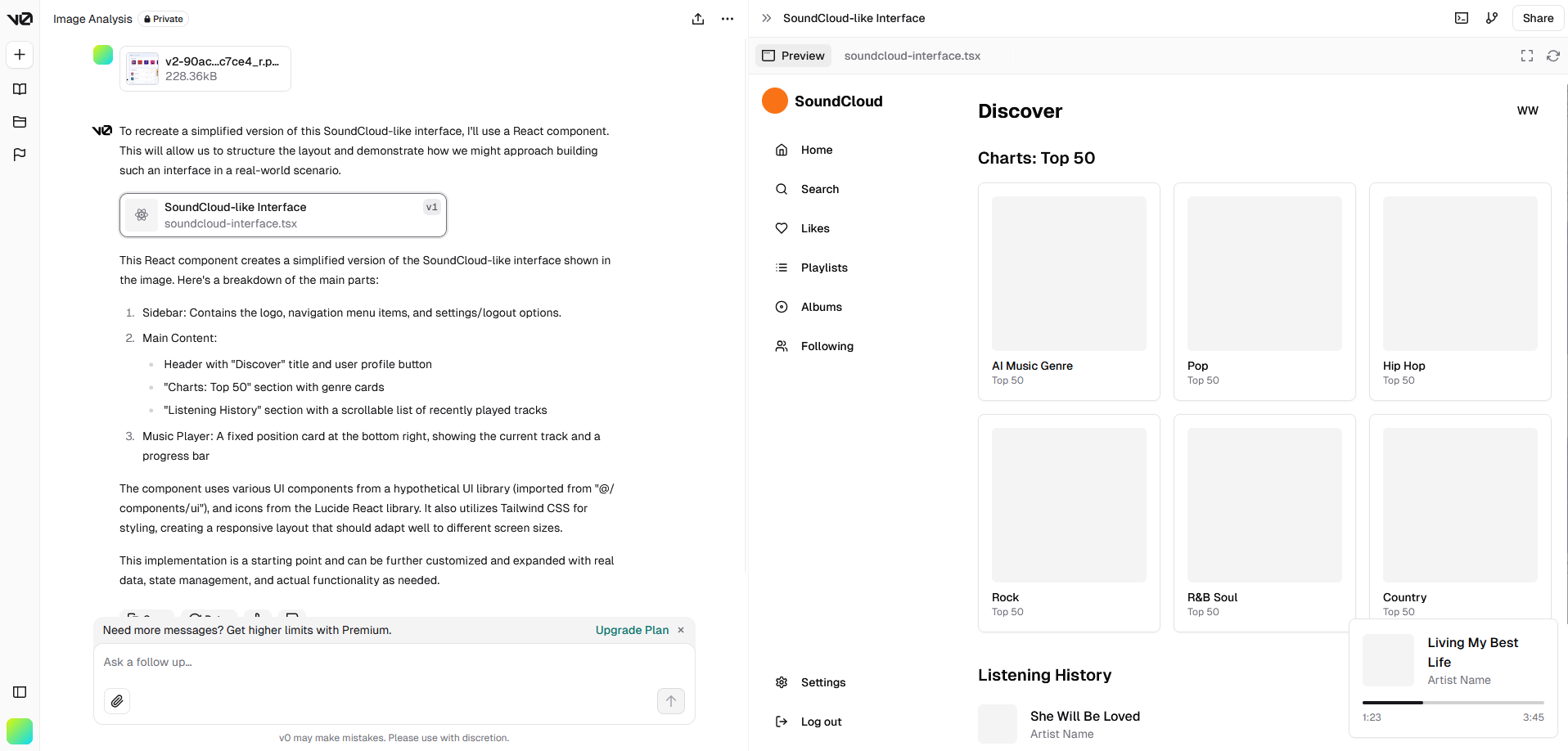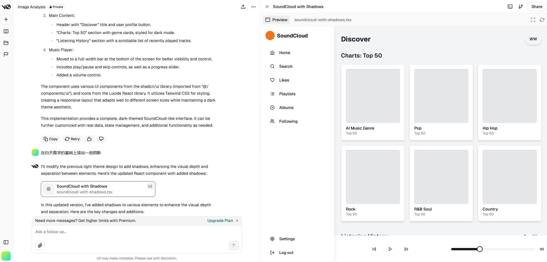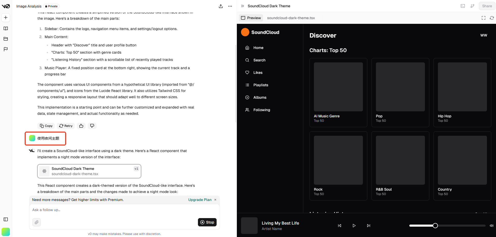 抛开代码的优劣,可以看到 AI 生成网页的前景还是有的,比如集成在 IDE 中的插件,可以读取当前项目的代码风格进行生成,也可以做到如上几个项目的效果时,可以生成更符合项目的风格的代码,也更方便操作选取需要重新生成的部分,这一点在 AI 绘画部分也有用到。另一方面来说,像 v0 这种产品作为快速生成原型用于验证设计的工具已经足够了。