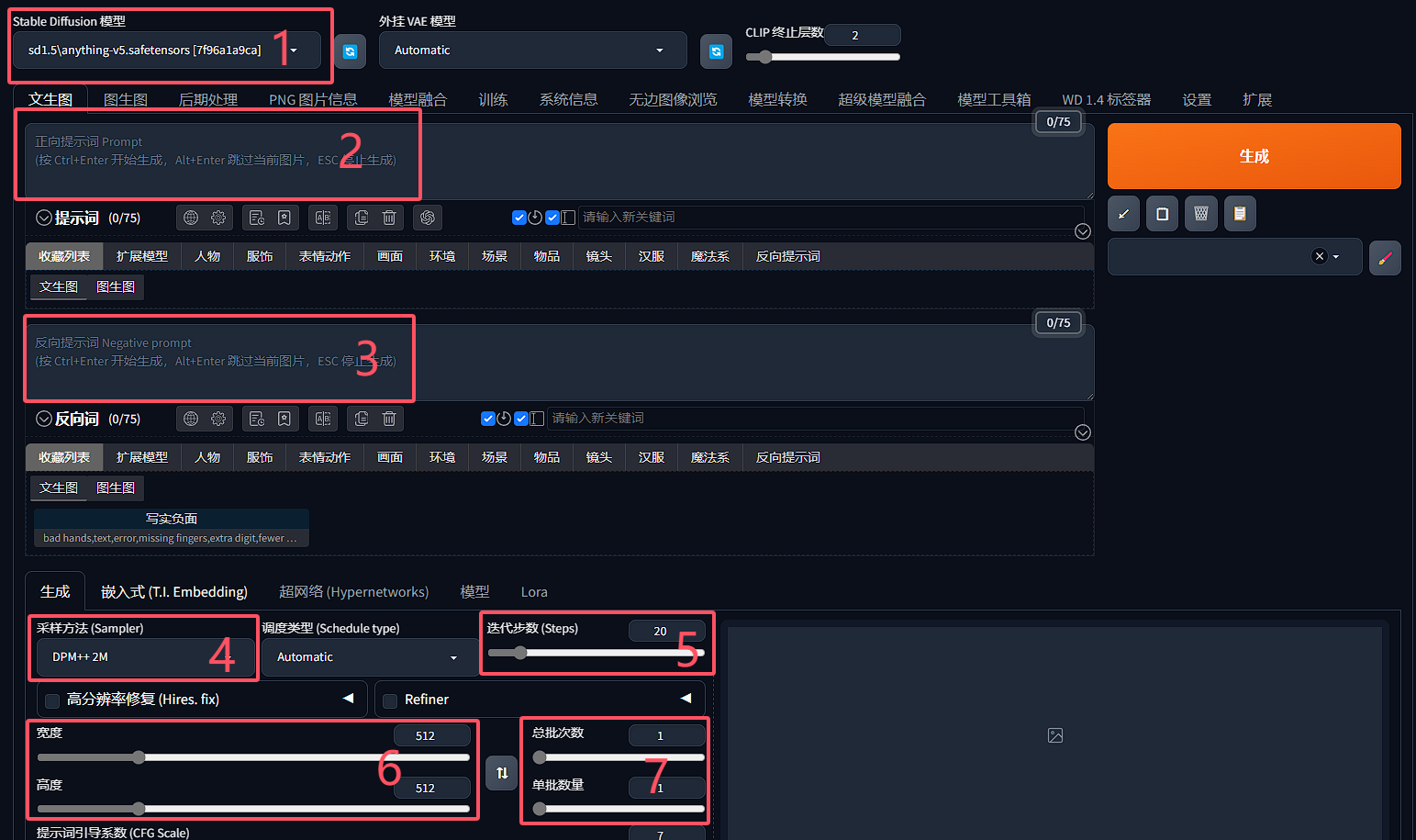 生成一张(Anything 是偏卡通的模型,不太明显,这里我用了另一个模型):