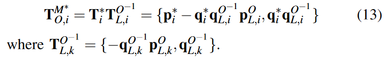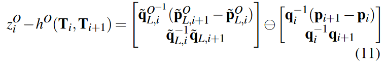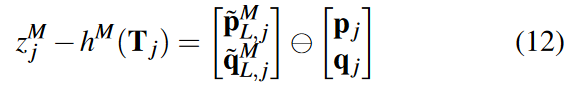 其中符号定义了获取两个位姿之间差异的操作。对于平移部分,是逐元素减法,而对于四元数 qi = {qi,s, ˇ qi},是虚部 ˇ qi 的逐元素减法。对于全局匹配位姿测量,残差: