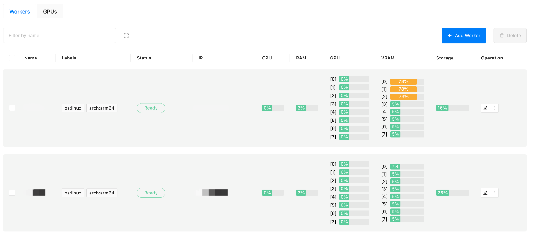 异构 GPU 支持:支持异构 GPU 资源,当前支持 Nvidia、Apple Metal、华为昇腾和摩尔线程等各种类型的 GPU/NPU