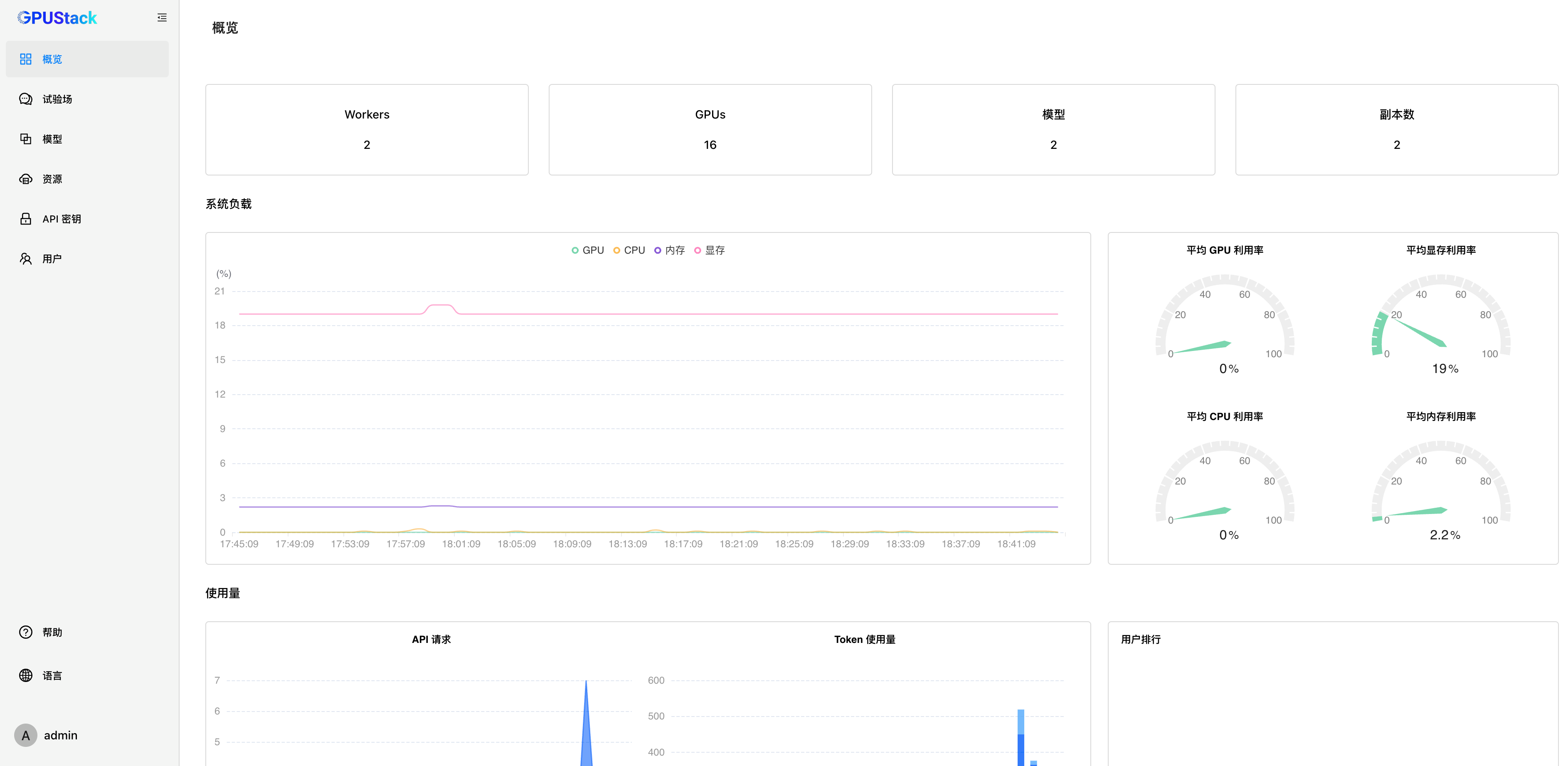 在浏览器访问 GPUStack UI,用户名 admin,密码为上面获得的初始密码。