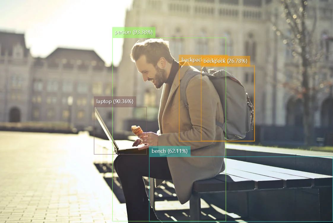 // 初始化yolo对象 string modelPath = "e:/yolov8l.onnx"; using var yolo = new Yolo(new YoloOptions { OnnxModel = modelPath, ModelType = ModelType.ObjectDetection, Cuda = false, GpuId = 0, PrimeGpu = false, }); // 加载图片数据 using var image = SKImage.FromEncodedData("e:/pic/1.jpeg"); // 执行检测任务 var results = yolo.RunObjectDetection(image, confidence: 0.25, iou: 0.7); // 在图片上绘制检测结果 using var resultImage = image.Draw(results); // 检测结果保存为新图片 resultImage.Save("e:/pic/1_result.jpeg", SKEncodedImageFormat.Jpeg, 80);