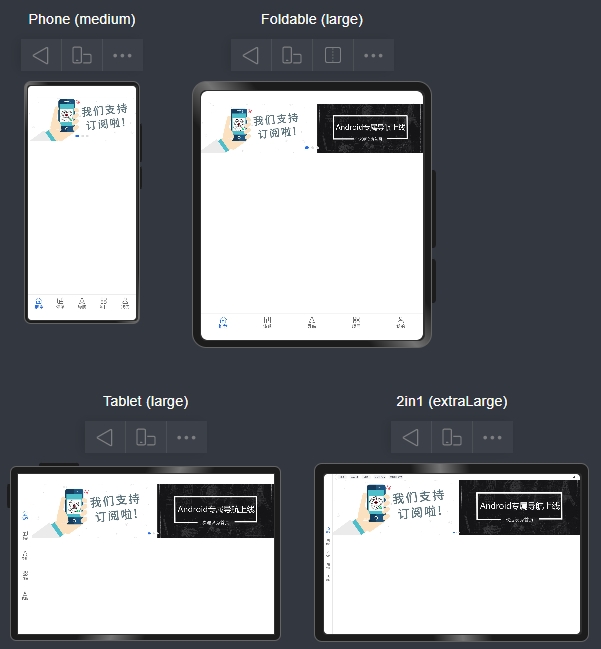 Banner有一个属性displayCount,用来控制一屏显示多少个组件,我们在小屏设备上显示一张图片,在中大屏设备上一屏显示2张图片。再使用aspectRatio设置合适的宽高比,就能达到我们想要的效果了。