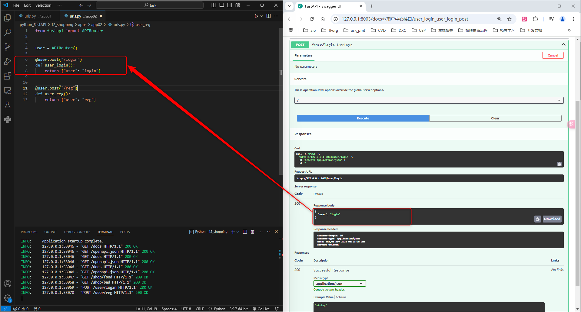 5.用户中心接口运行结果_post请求_login
