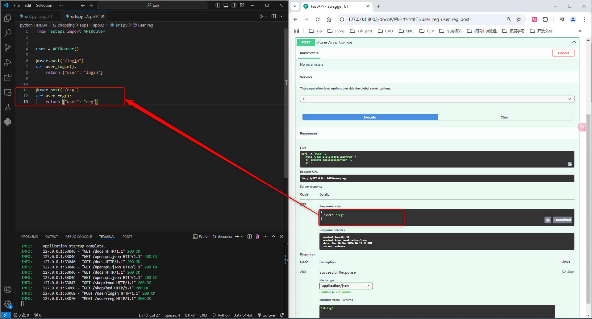 6.用户中心接口运行结果_post请求_reg