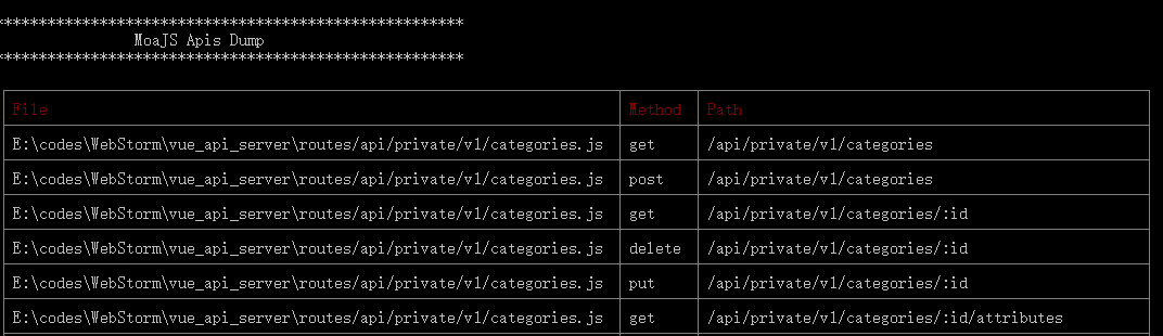 接口代码在你的项目路径\vue_api_server\routes\api\private\v1,如果你能看懂代码,可以直接阅读js文件,自己梳理接口。