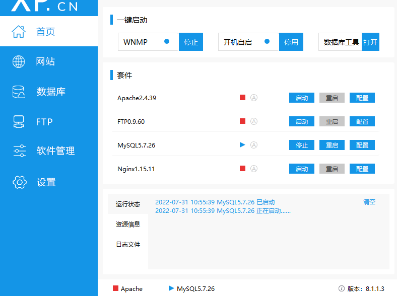 下载后直接安装并打开软件(最好以管理员方式打开),再启动MySQL。