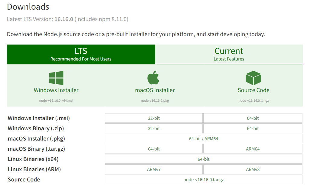 访问网站https://nodejs.org/en/download/,下载对应系统的安装包。