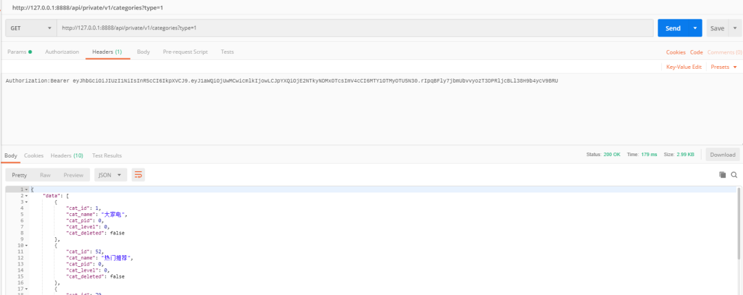请求URL:http://127.0.0.1:8888/api/private/v1/categories