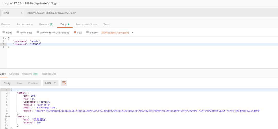 请求URL:http://127.0.0.1:8888/api/private/v1/login