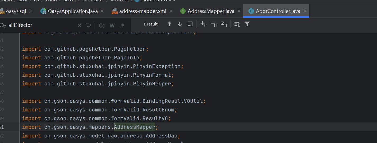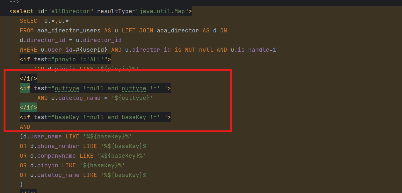 符合sql注入条件,于是开始找对应接口,参数,全局搜索allDirector字段: