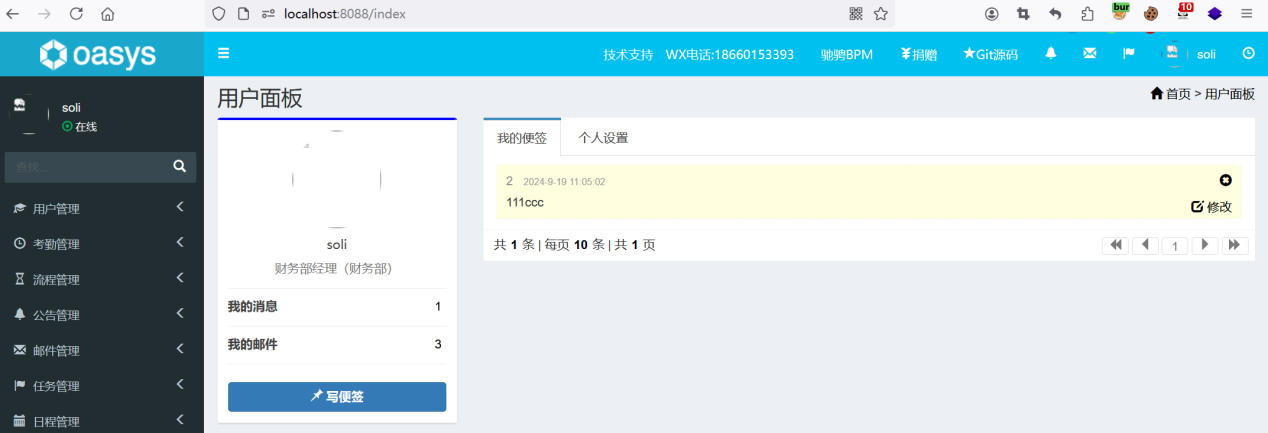登录后台,在用户面板处,修改便签功能存在csrf漏洞。