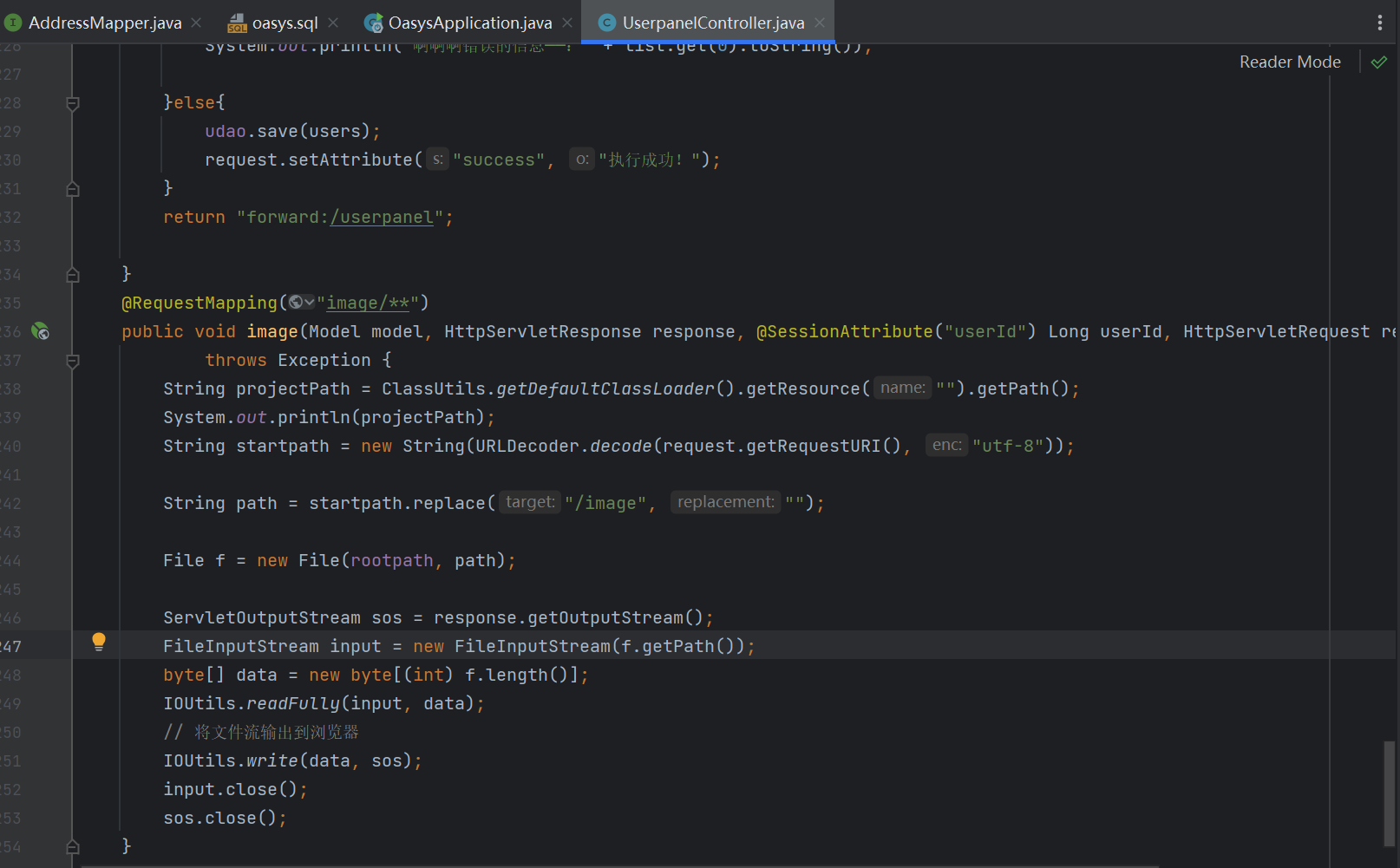 在控制层UserpanelController处,如下代码存在逻辑错误导致任意文件读取: